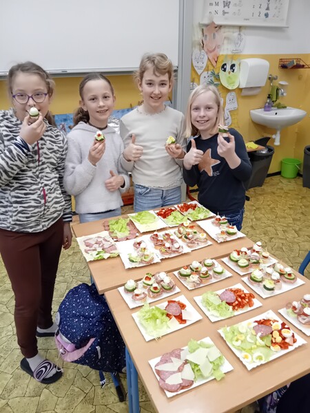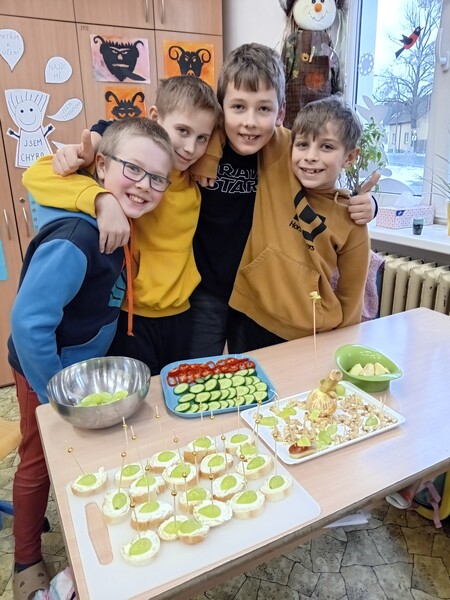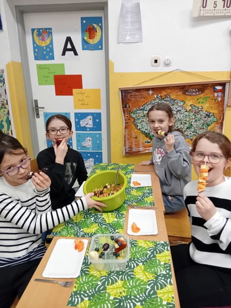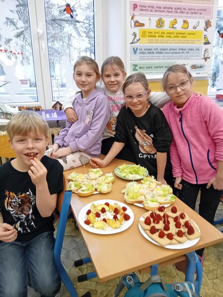 Pololetní vysvědčení si děti ze 3.C oslavily vlastnoruční výrobou chlebíčků, jednohubek slaných i sladkých tortil a ovocných mís či špízů. Všichni se moc těšili na tuto netradiční výuku pracovních činností a vytvořili úžasné dobroty, které lahodily oku i chuti. Tak dobrou chuť a na zdraví! A ať je to druhé pololetí stejně tak úspěšné.