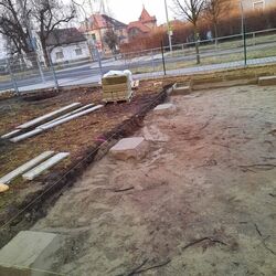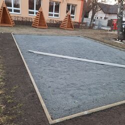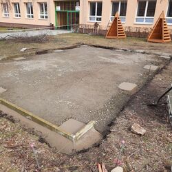 Důležitým místem pro vzdělávání prvňáčků se stane venkovní učebna, na jejíž základech se pilně pracuje: