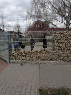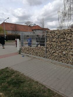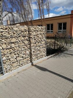 Na stavbě gabionového plotu, lemujícího celou zahradu, se podíleli i naši žáci: