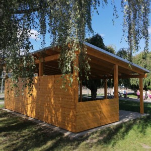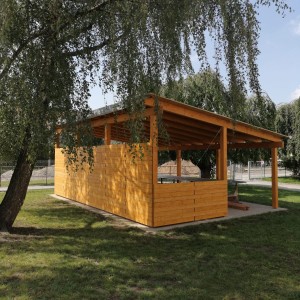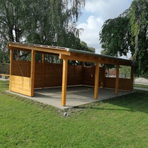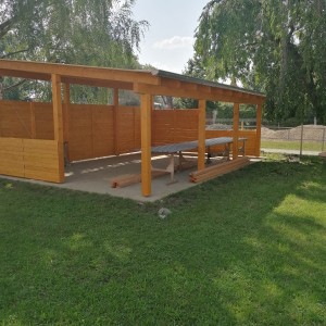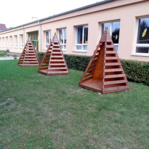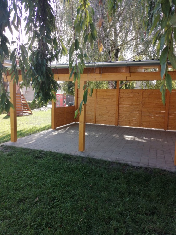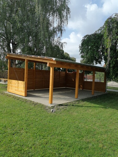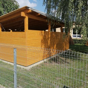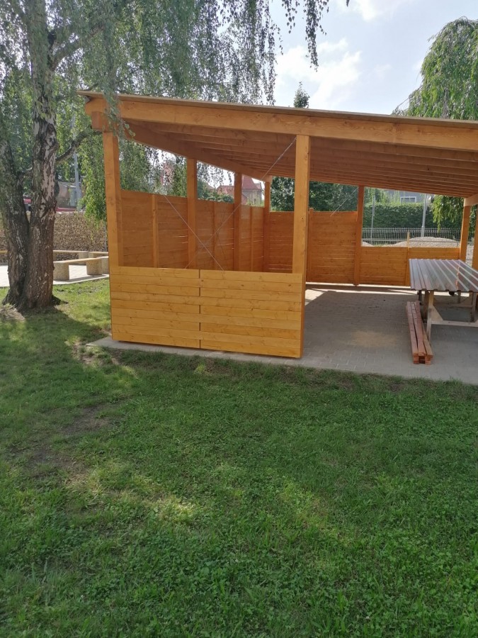 V pozadí této základové desky zároveň vznikají dřevěné stavby určené pro zábavu nejmenších a jiné herní prvky: